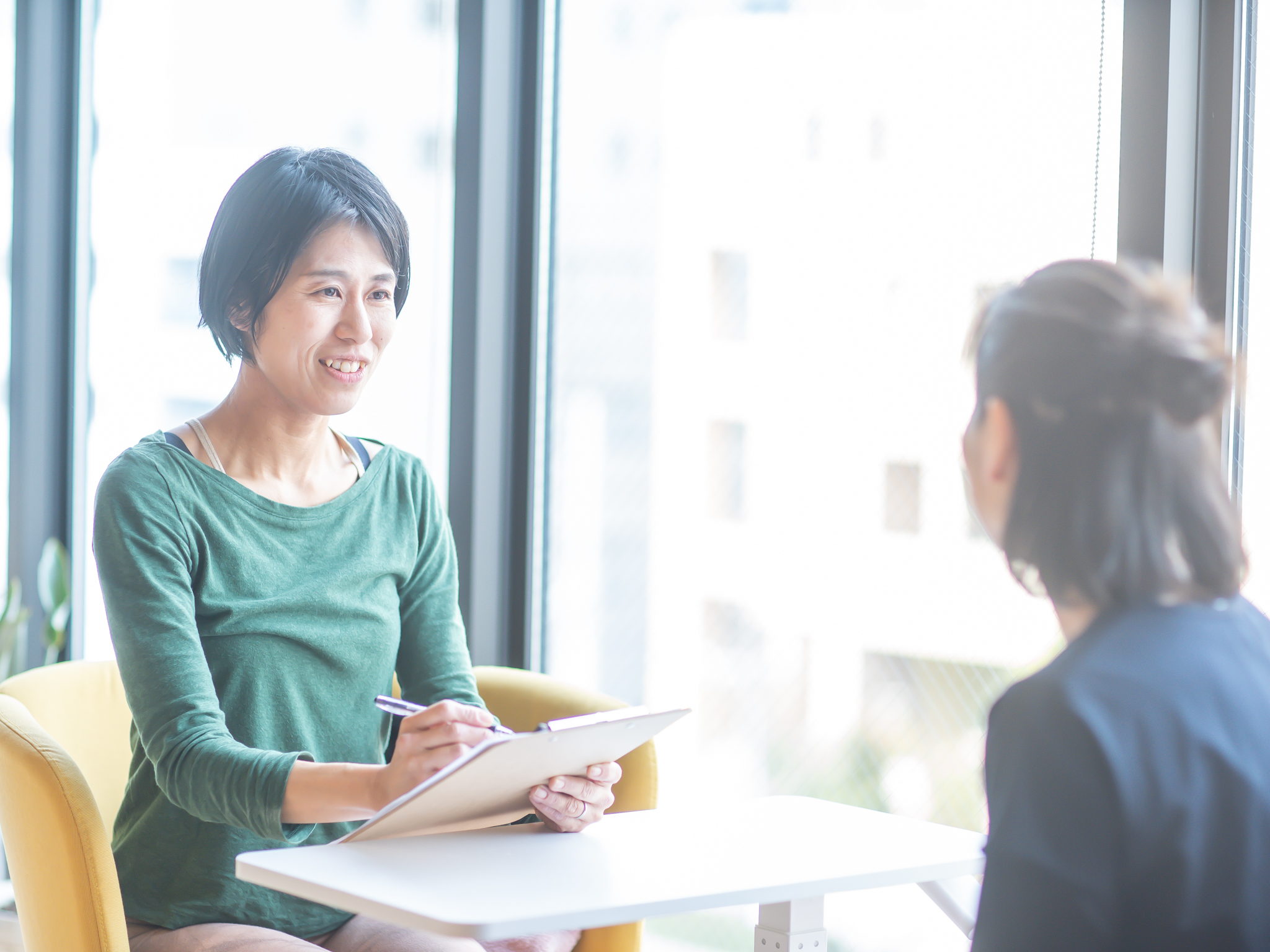 初回には身体の状態を丁寧にカウンセリングし、不安やお悩みを確認したうえで、それらの改善を目的とした基礎的な運動をサポートします。